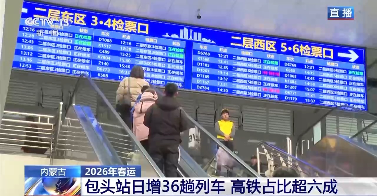 包银高铁迎来首场“春运大考”。作为包银高铁的起点站,包头站每天接发的列车从146趟增加到了182趟,其中高铁和动车占比超过六成,光包银高铁每天就开行72趟。